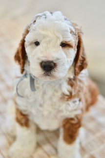 Goldendoodle puppies were born to Bo on 1/13/26! Two girls and two boys and they have the most perfect tuxedo markings. 20-25 lbs full grown. Go-home day is 3/10/26. Two males still available!